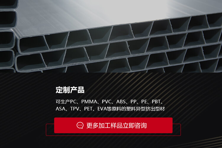 公司擁有專業的研發部門和模具部門,并配備12條50-150mm擠出機生產線,具備設計生產各種ABS、PP、PE、PA、PVC等塑料的擠出產品的能力,在塑料加工應用領域有著非常豐富的經驗和技術積累。